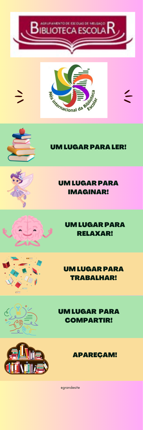 Outubro é o mês internacional da biblioteca escolar cujo mote para este ano é Biblioteca escolar: o meu lugar preferido para criar e imaginar. Assim, foram realizadas diversas ações ao longo do mês.