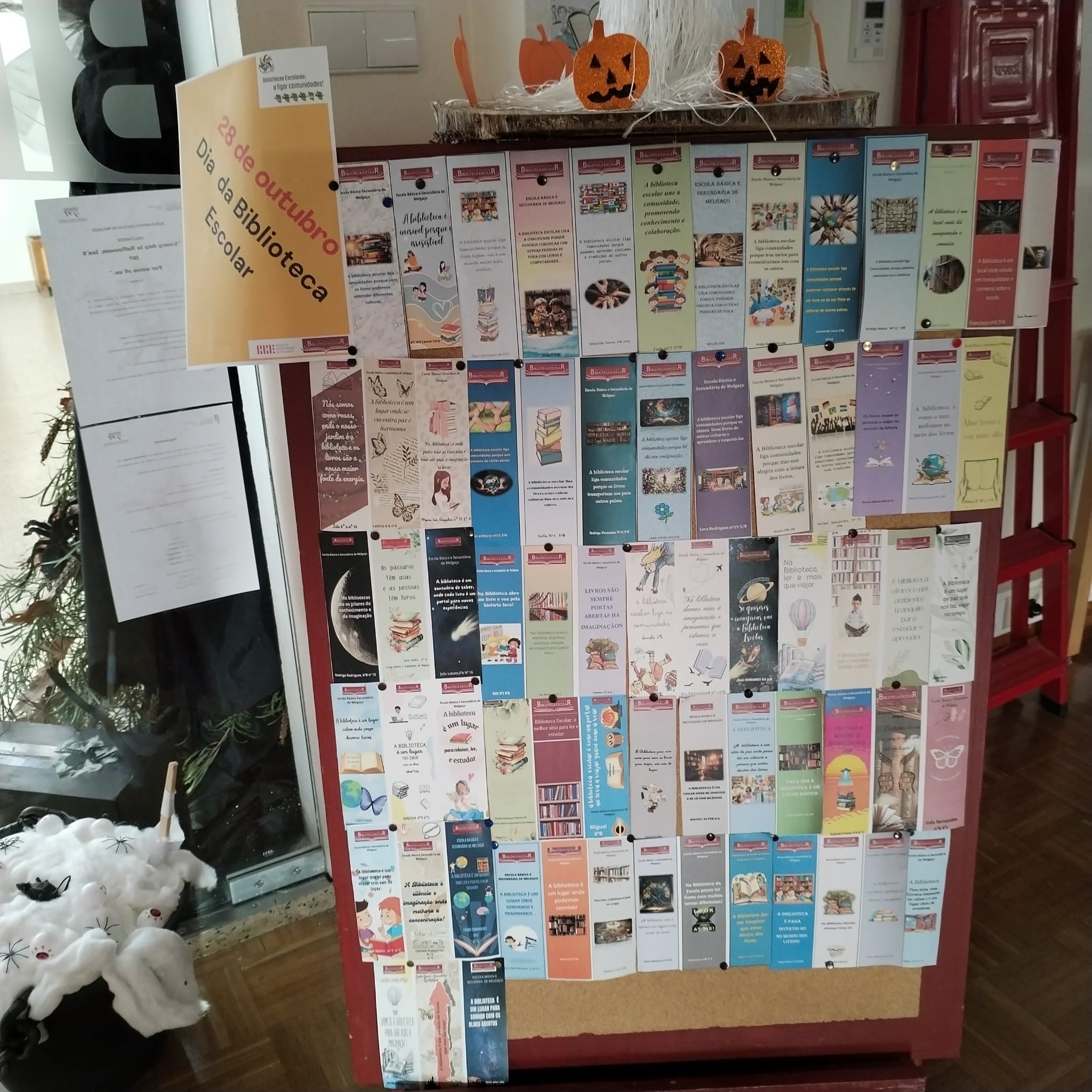 Os alunos, no âmbito da disciplina de Literacias, produziram marcadores alusivos à temática, que resultaram numa exposição, no dia 28 de outubro – Dia da Biblioteca Escolar, na BE, ficando disponíveis para oferta.