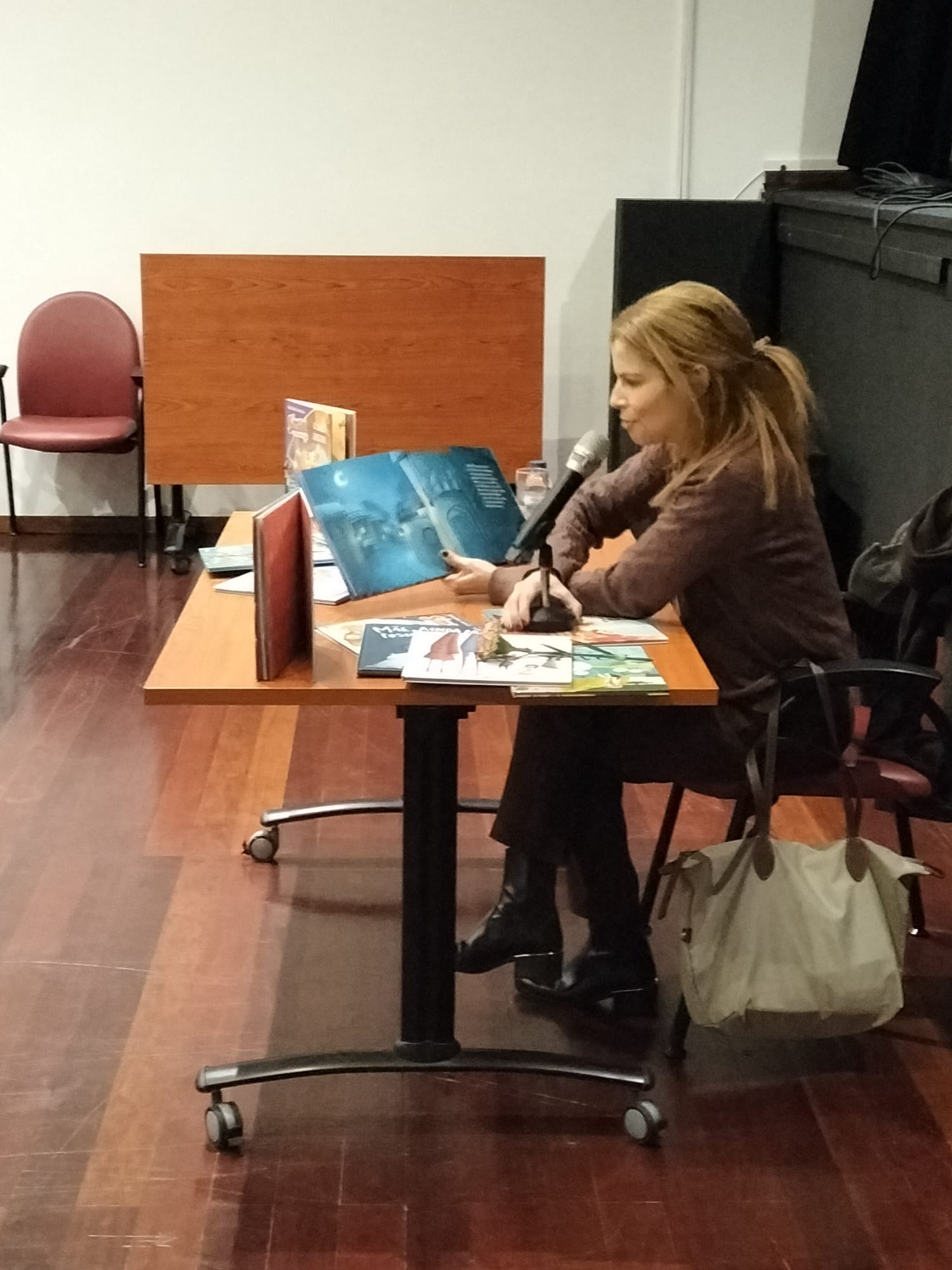 A autora apresentou algumas das suas obras e interagiu com os diferentes públicos, incentivando a leitura e explorando as competências associadas à escrita, à ilustração e ao processo criativo. Sensibilizou os alunos para a importância da leitura e do seu caráter pessoal, e desta forma contribuir para a formação integral de cada um.