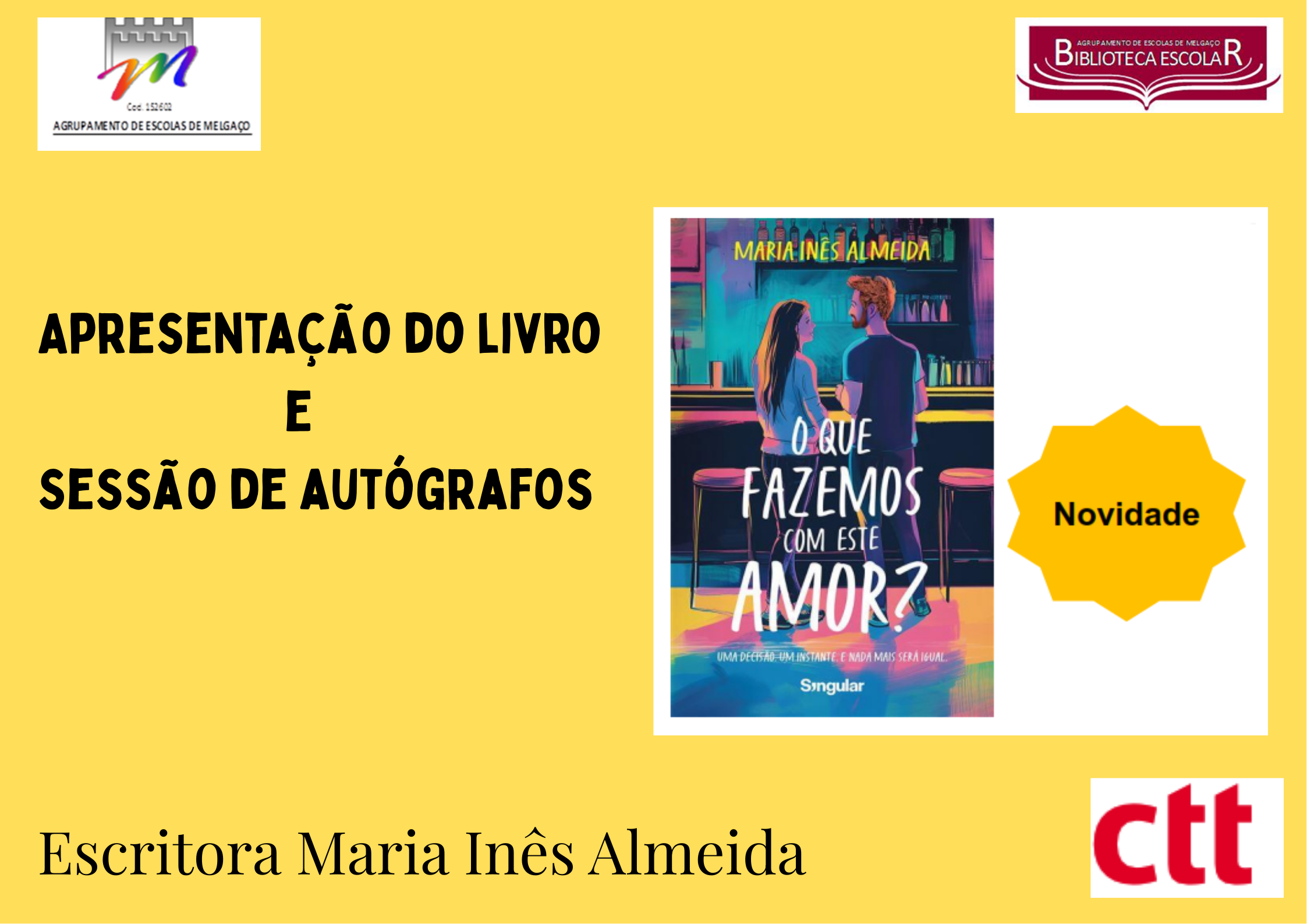 No dia 28 de novembro decorreu, neste Agrupamento, a atividade “Ler…é um Prazer”- encontro dos alunos do Pré-escolar, 1º ciclo e 10º ano de escolaridade com a escritora Maria Inês Almeida. O encontro com a escritora teve como parceiro os CTT que, recorrendo ao mecenato, proporcionaram a entrega de um livro autografado a todos os alunos do agrupamento, destes níveis de ensino.