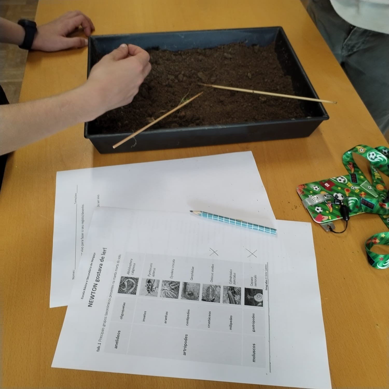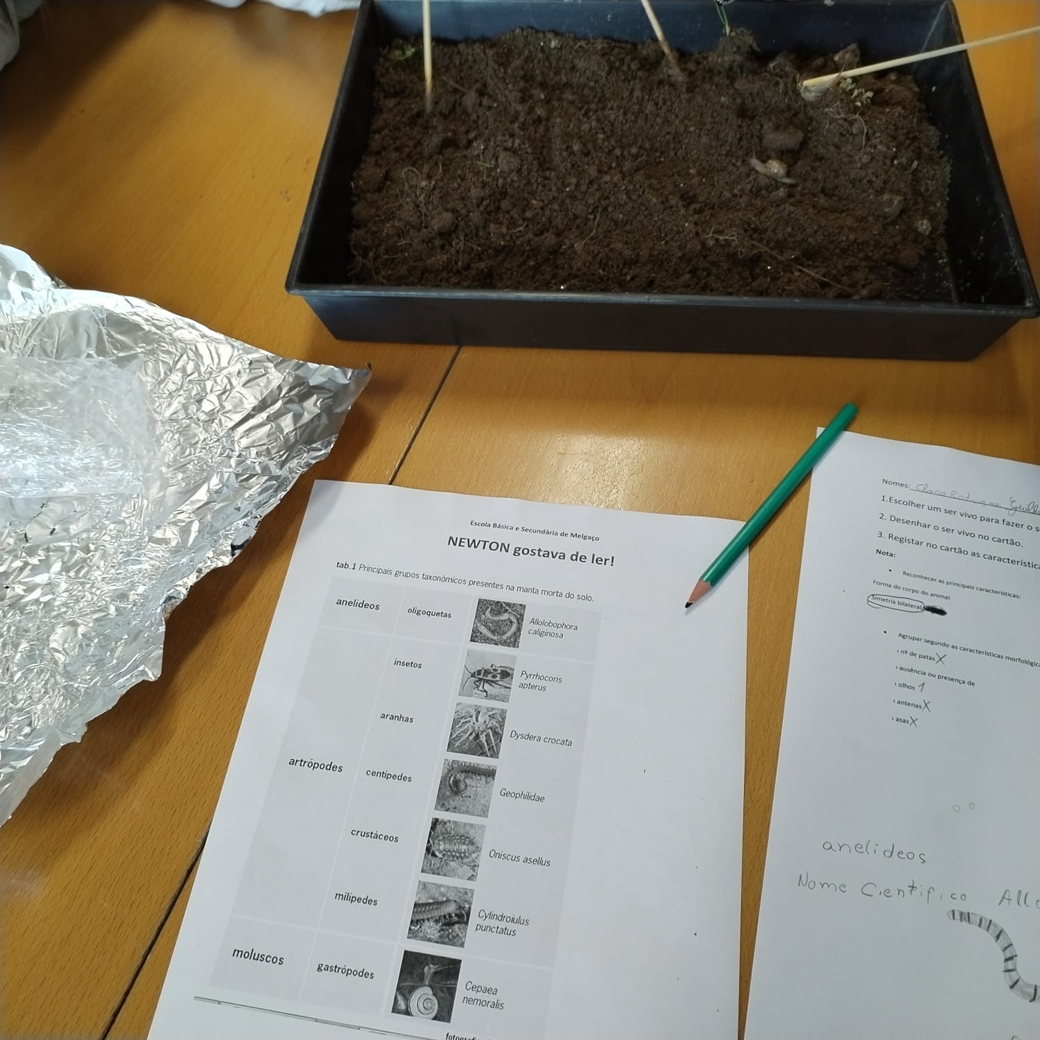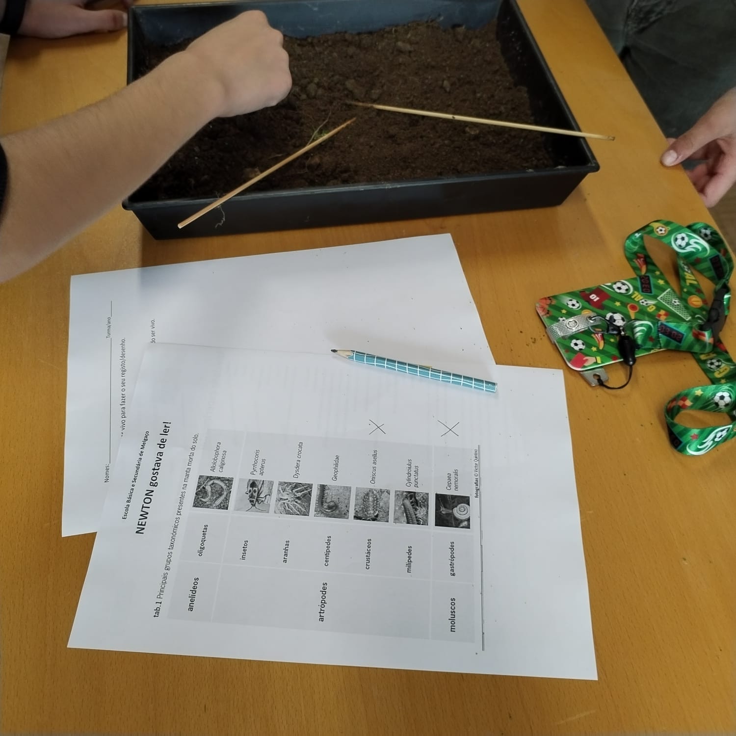 No âmbito do projeto “Newton gostava de ler!”, foi realizada, no dia 9 de março, a atividade Biodiversidade da manta morta”. A mesma foi dinamizada pela professora bibliotecária em colaboração com a docente de Ciências Naturais, tendo participado os alunos das turmas A, B e C do 5º ano. Partindo da leitura e exploração do livro Há um cabelo na minha terra!, de Gary Larson, os alunos foram convidados a realizar, em grupo, a atividade experimental.