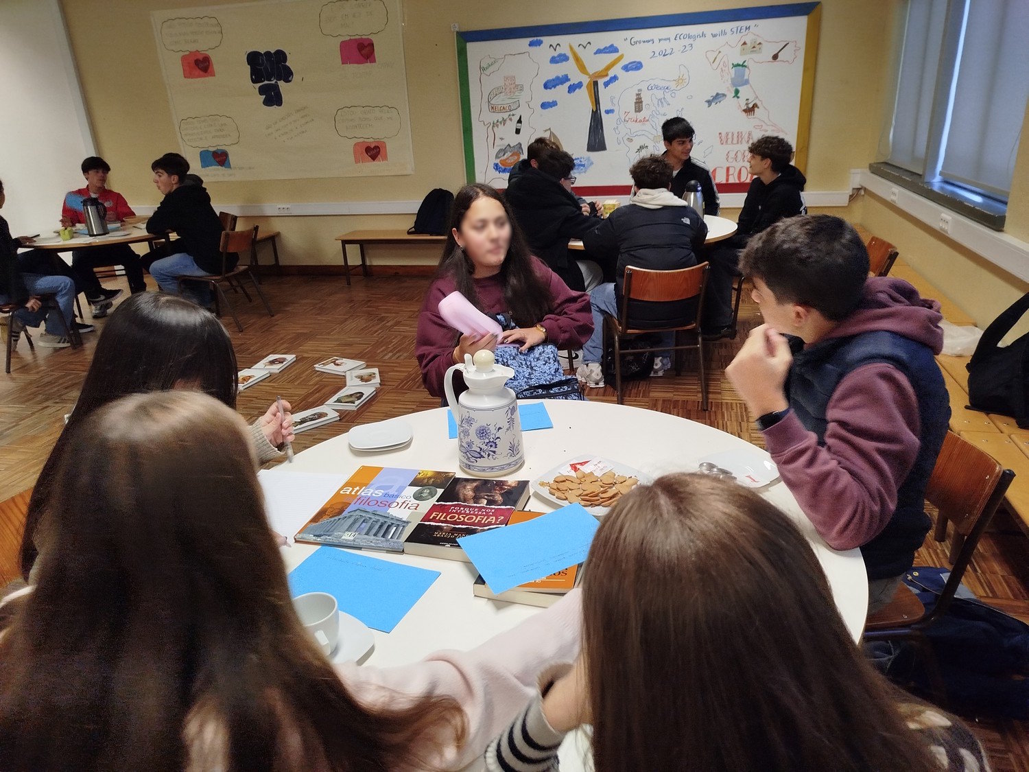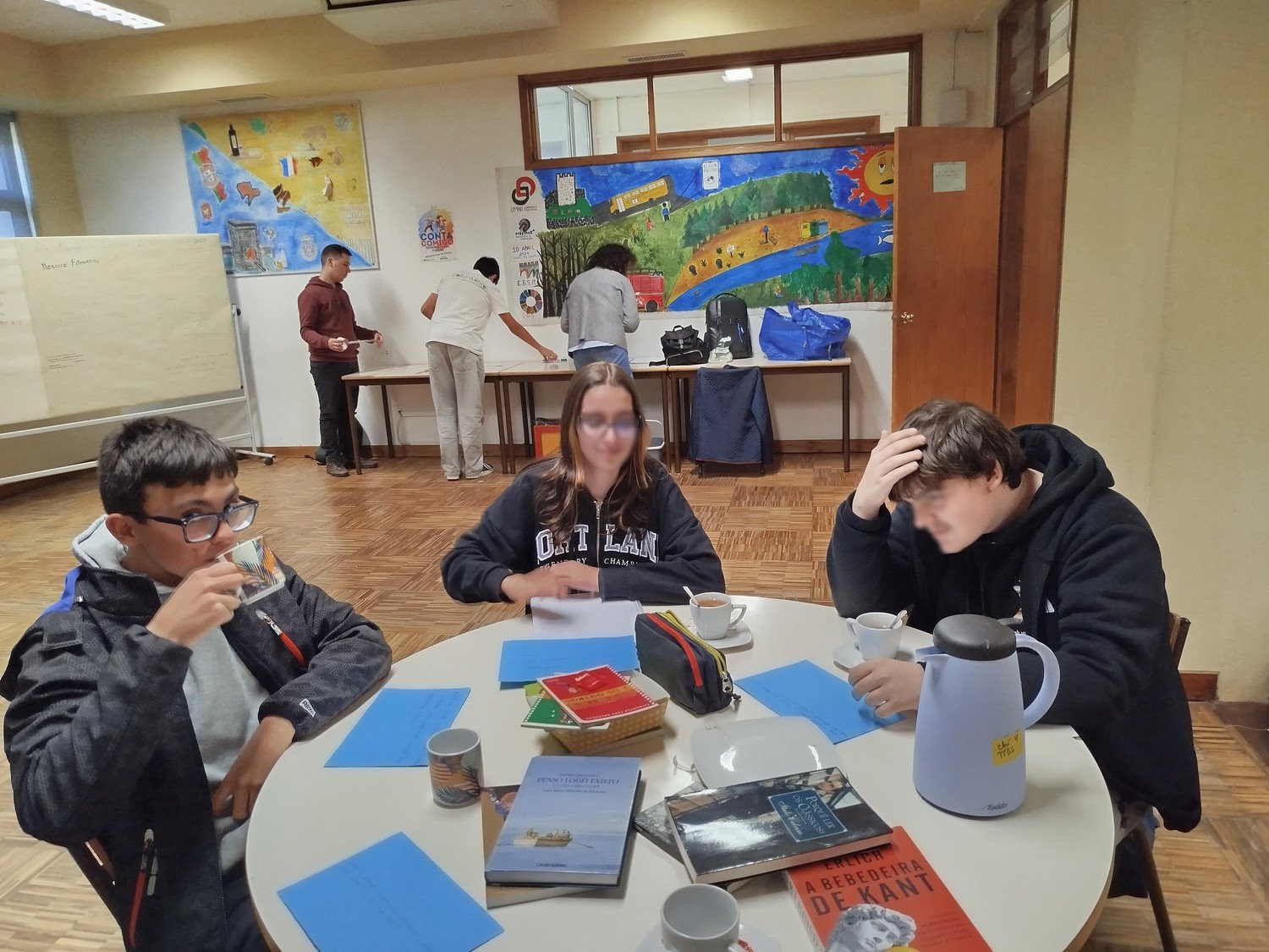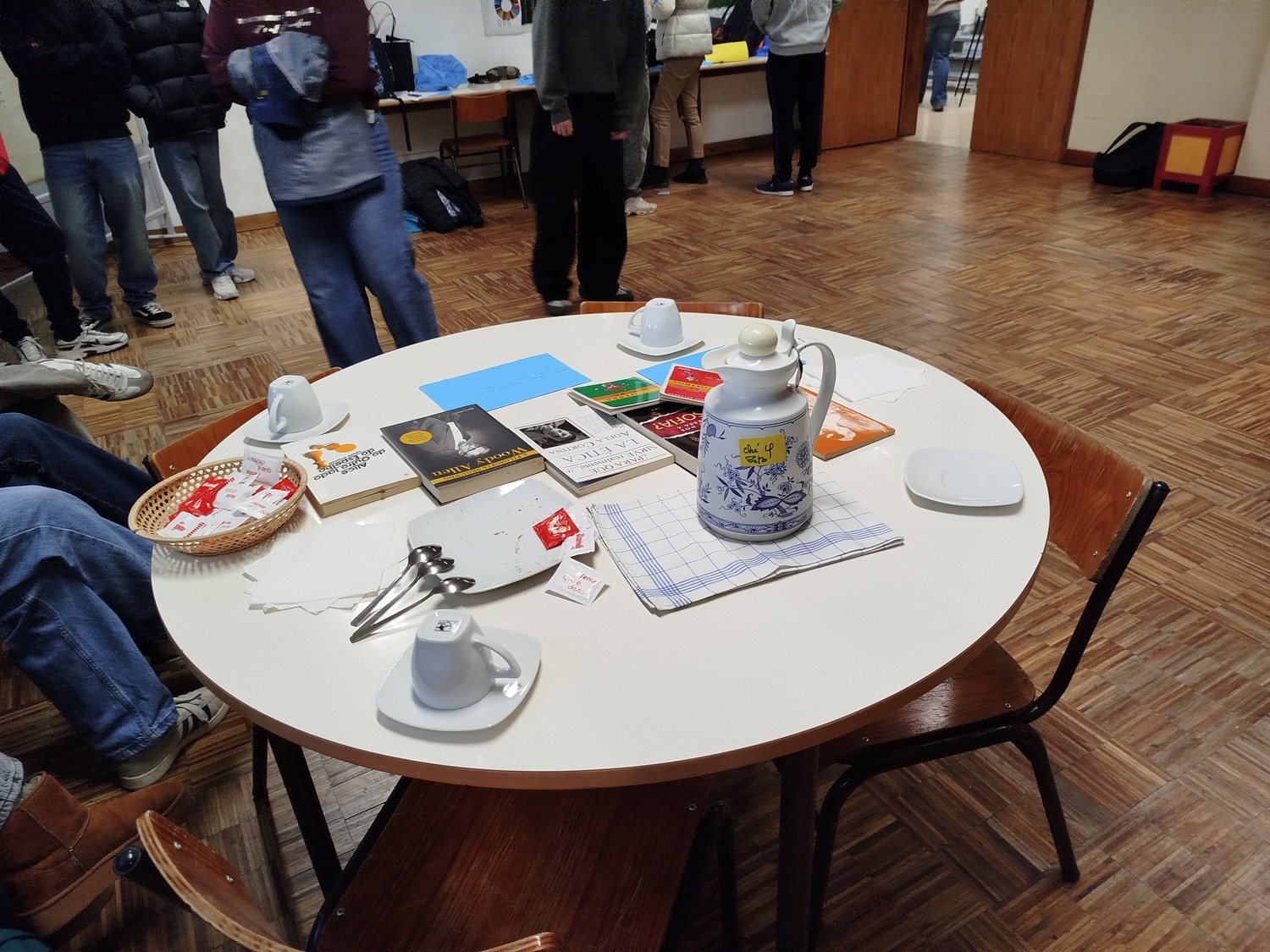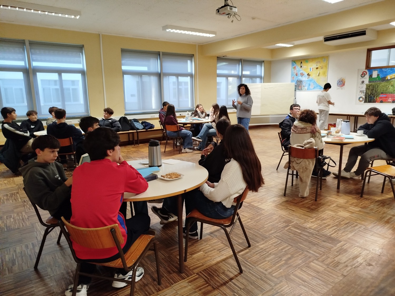 Na sala de convívio decorreu durante todo o dia, a dinâmica: Conversas Filosóficas, nos diferentes cantinhos, foi servido e degustado um chá filosófico, que foi partilhado numa versão intimista entre livros e temas em discussão sugeridos pelos alunos. Estes orientaram conversas e deixaram-se afetar pelo espirito critico tão necessário na formação dos jovens e na sociedade contemporânea.
