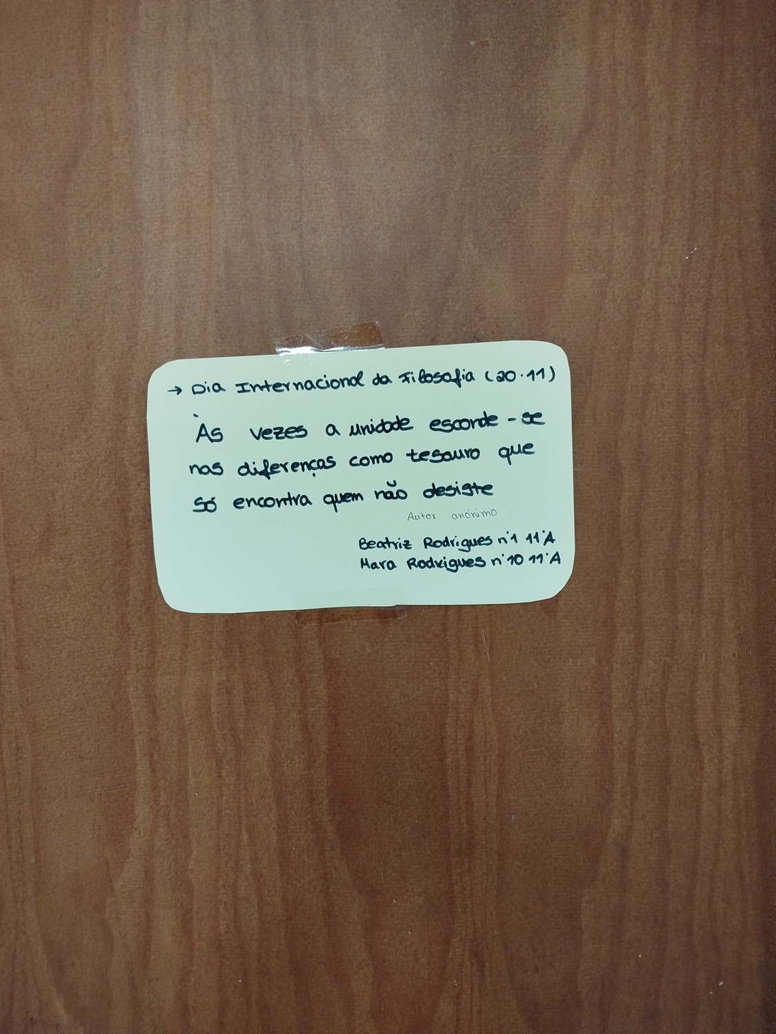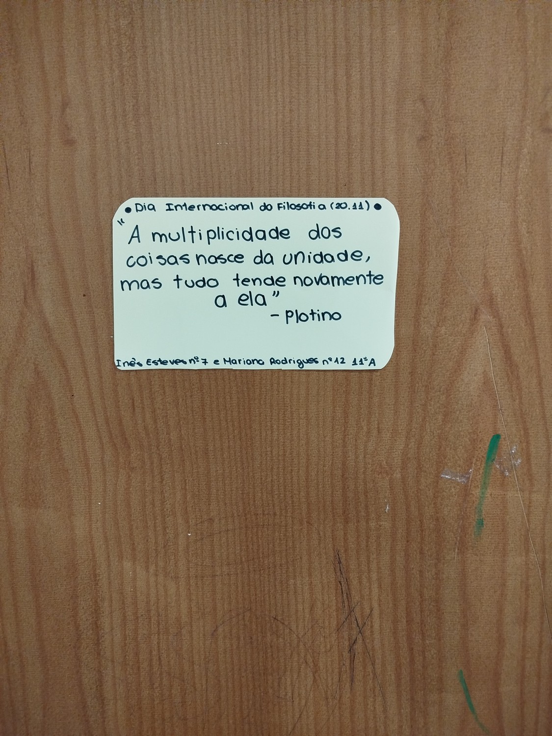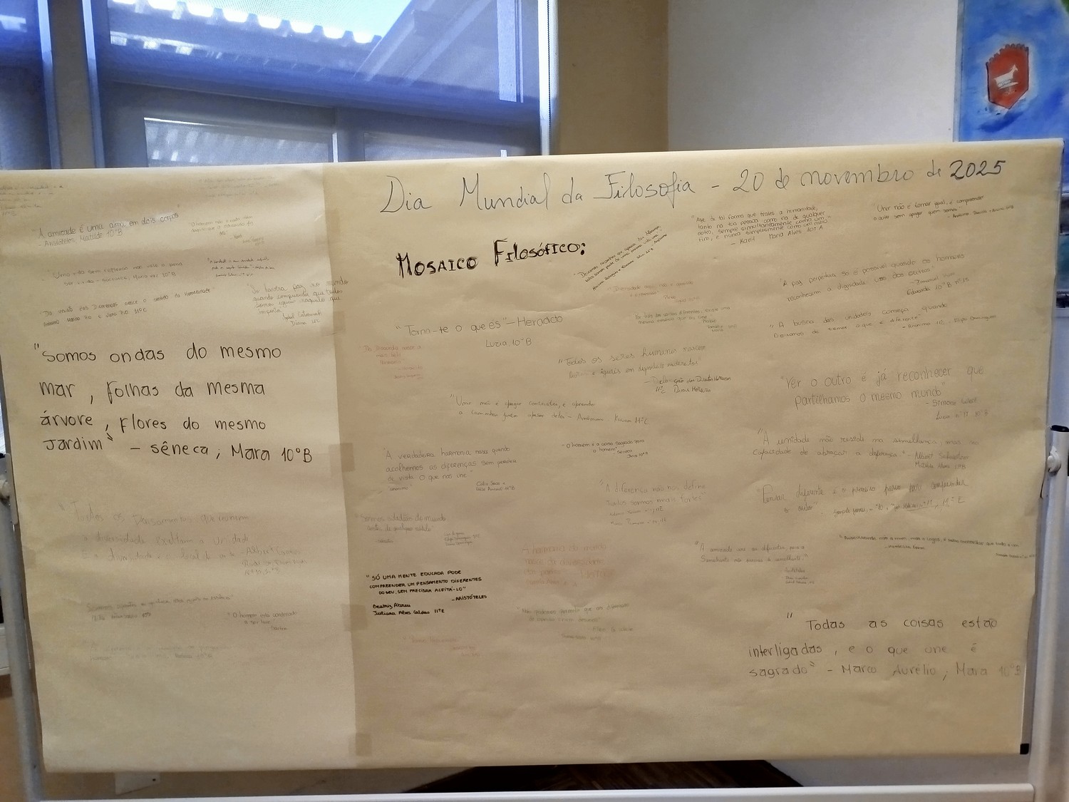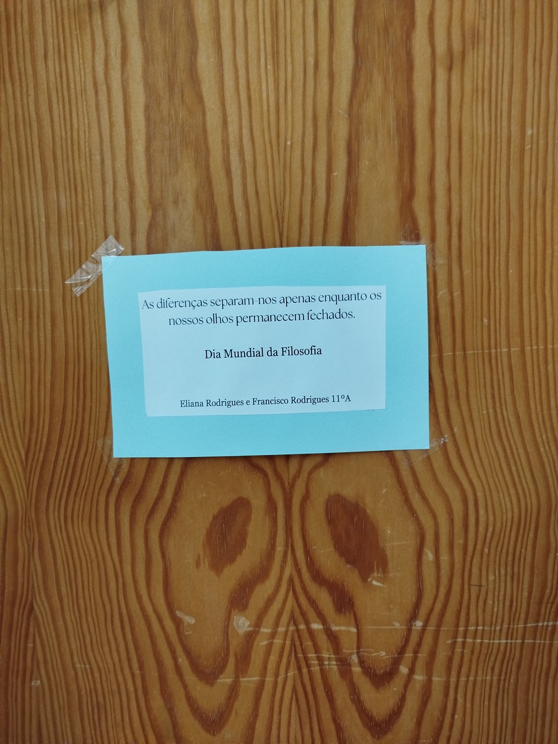 Com o propósito de assinalar o Dia Mundial da Filosofia, 3.ª quinta-feira do mês de novembro, por determinação da UNESCO, este ano letivo no dia 20, o Grupo 410 promoveu juntamente com todos os alunos que frequentam a disciplina no 10.º e 11.º ano, um conjunto de iniciativas que assinalaram a data.