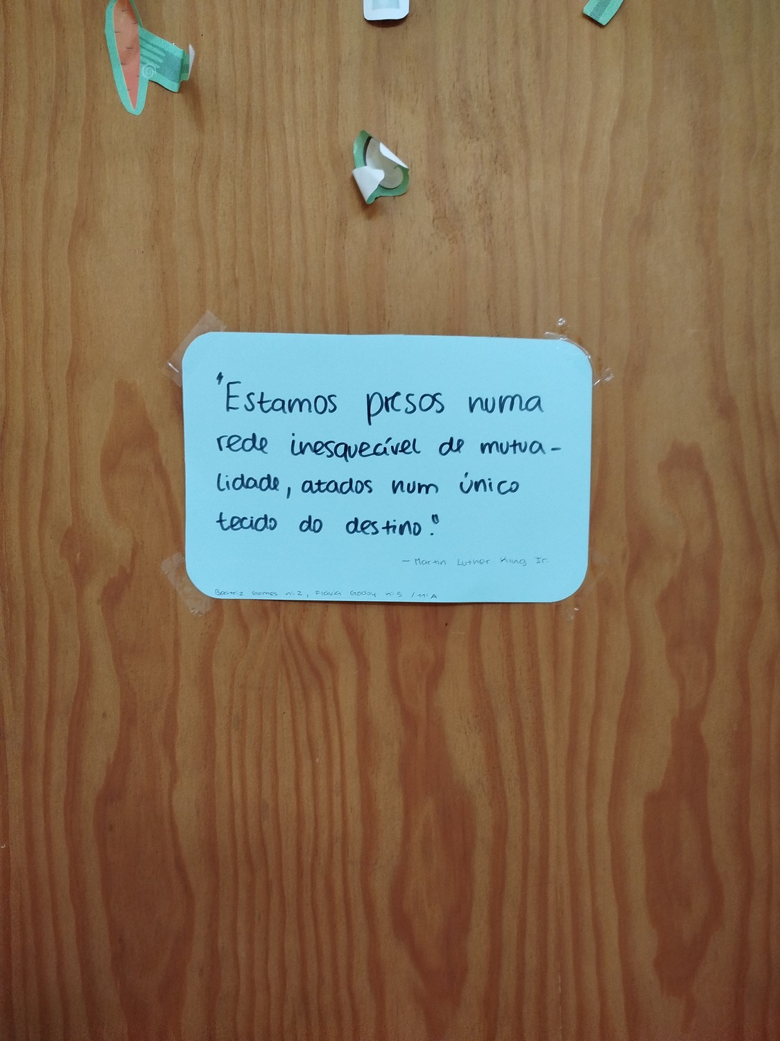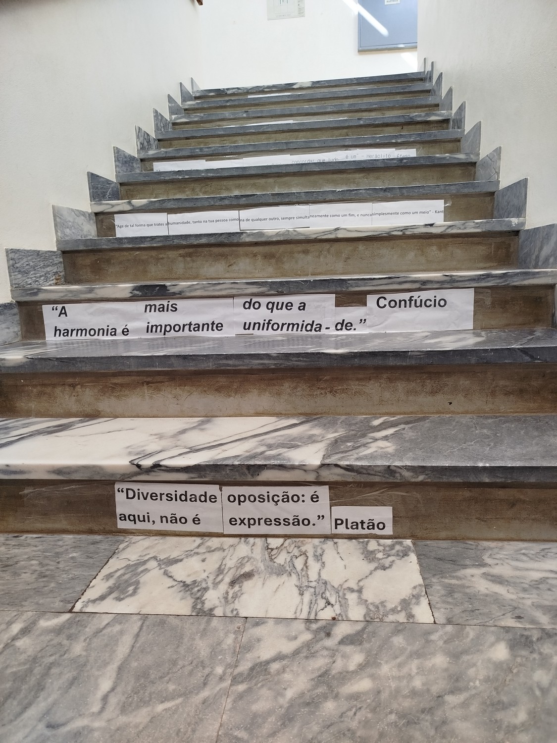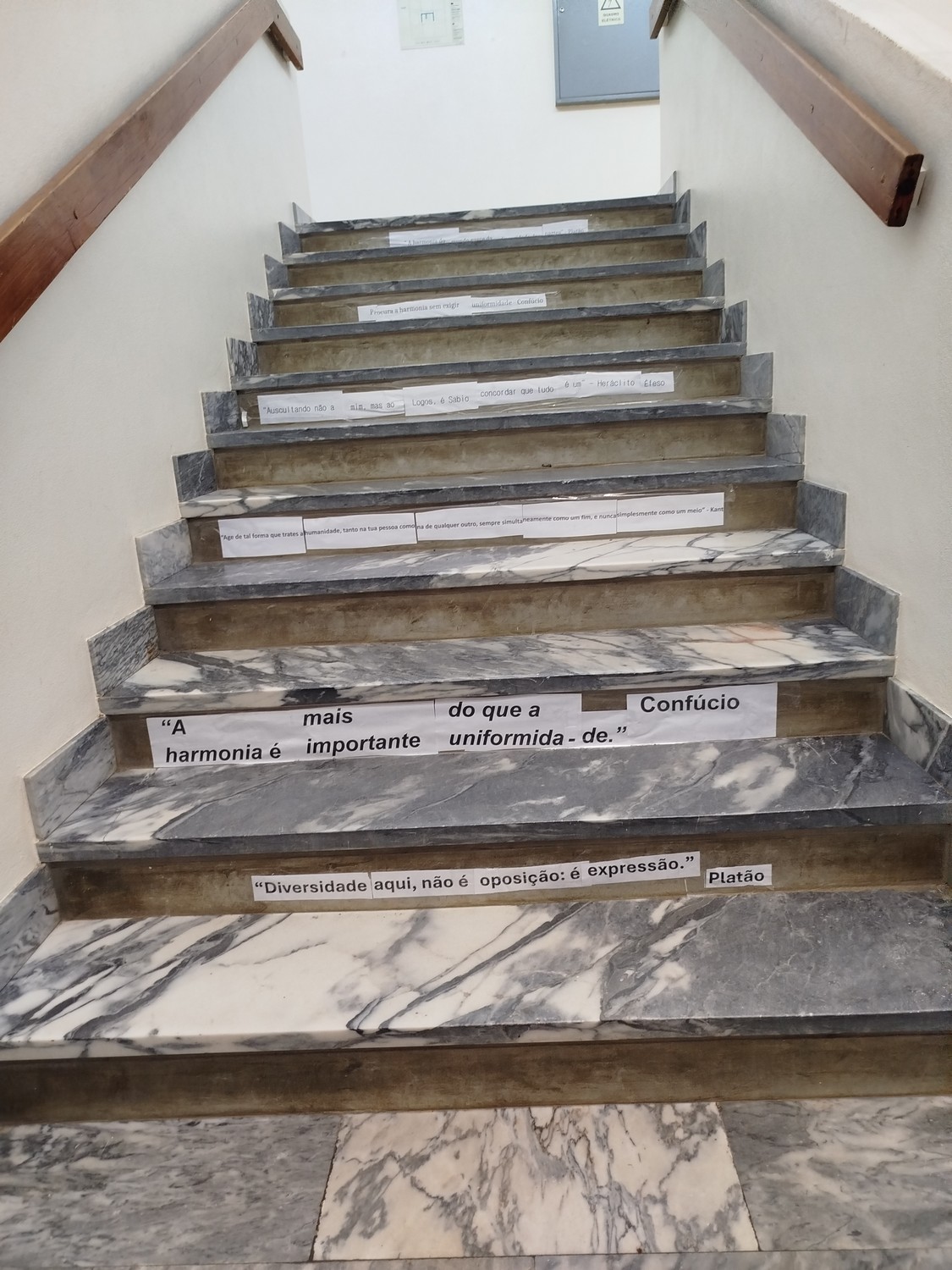 Noutras dinâmicas, e com o objetivo de fazer a Filosofia sair da sala de aula, foram pesquisados pensamentos inspiradores que foram colados nas portas dos pavilhões e nas escadas do pavilhão 3.