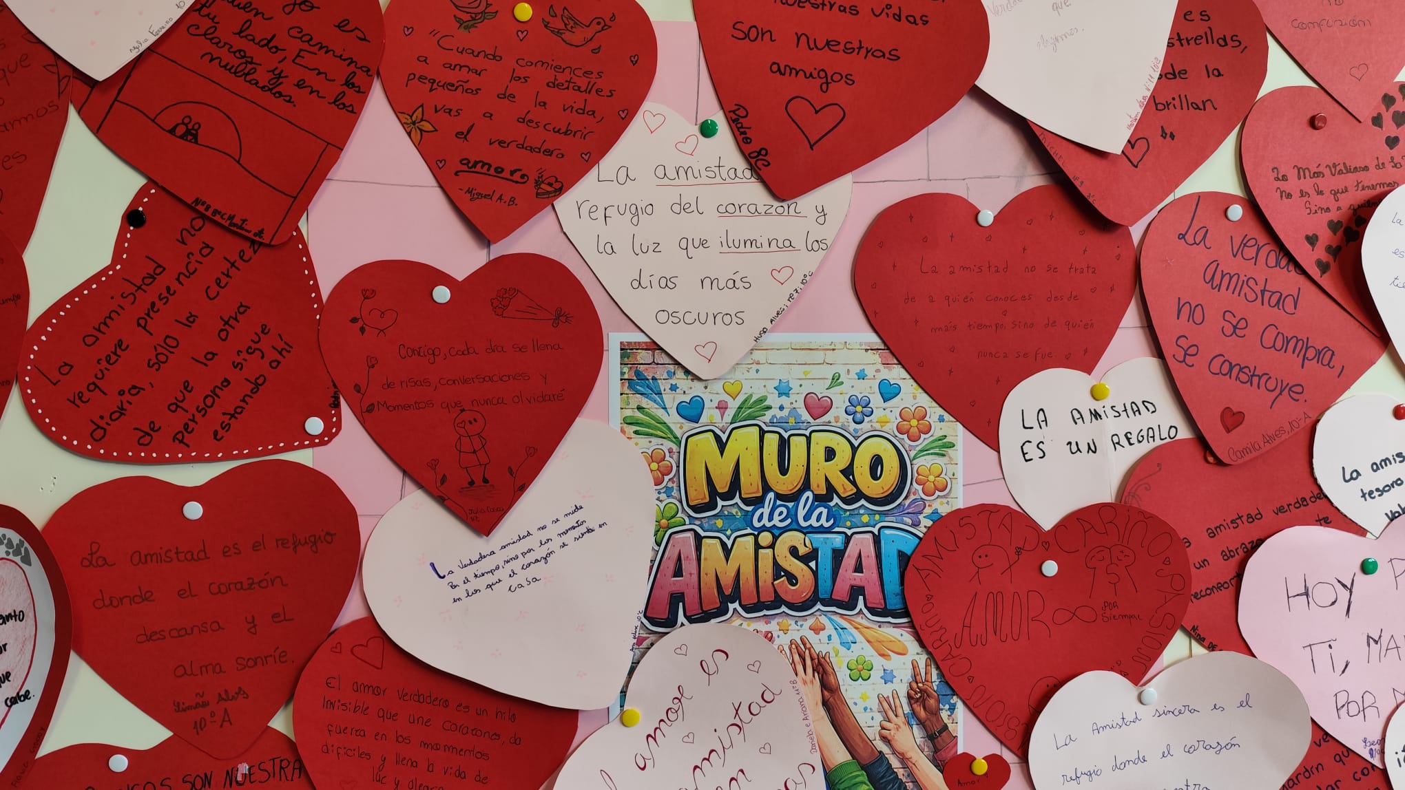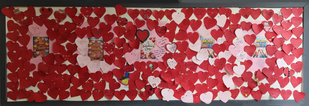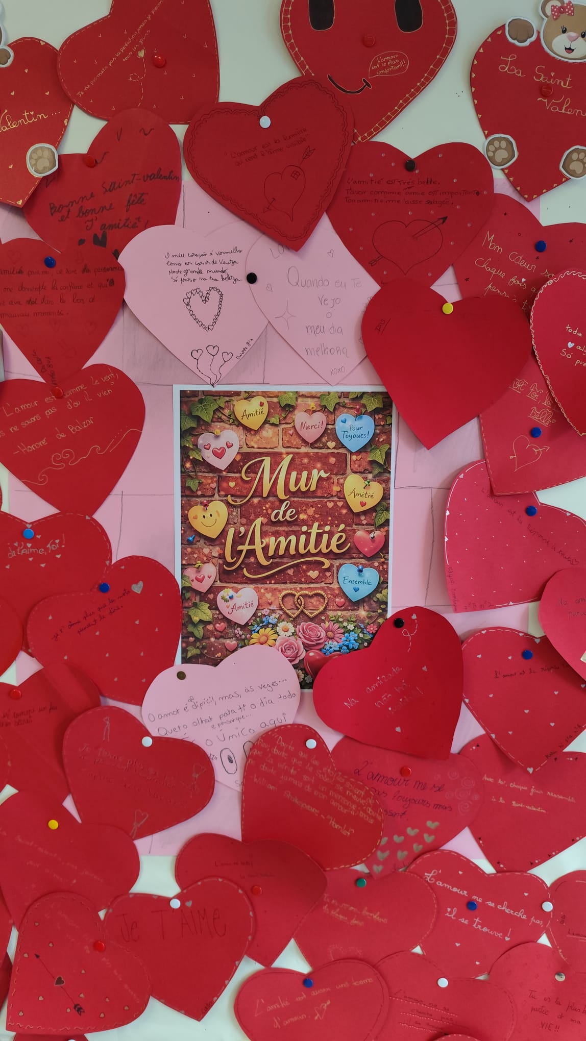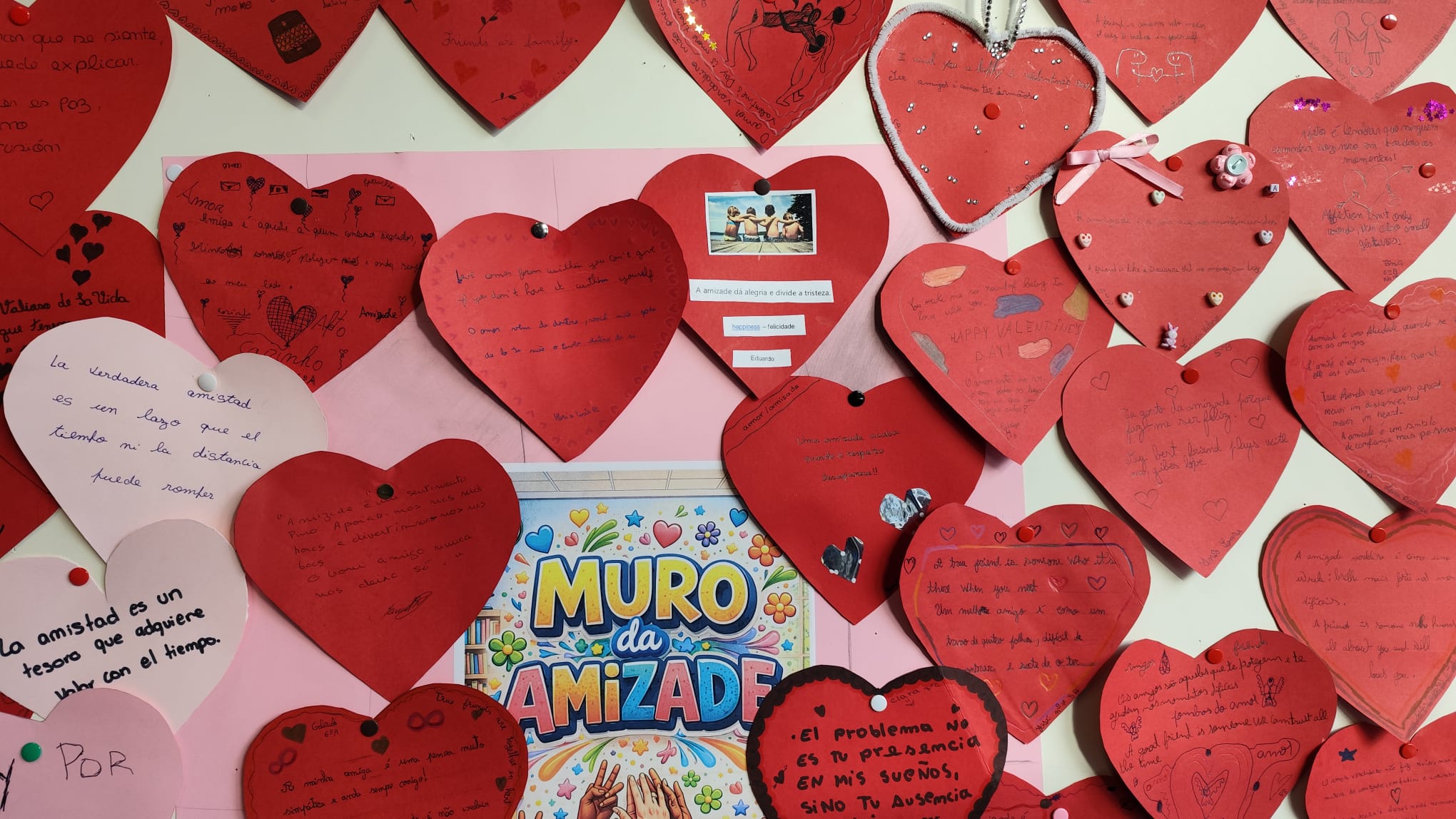 Sob o mote “Mural dos Afetos – Muro da Amizade; Wall of Friendship; Mur de l’Amitié; Muro de la Amistad”, foi organizada uma exposição que convidou os alunos a expressarem sentimentos de amizade e carinho em diferentes idiomas. Cada participante teve a oportunidade de escrever, num coração elaborado para o efeito, uma mensagem numa língua estrangeira ou materna, promovendo simultaneamente a diversidade linguística e cultural e o desenvolvimento de valores relacionais essenciais a uma convivência saudável entre pares.