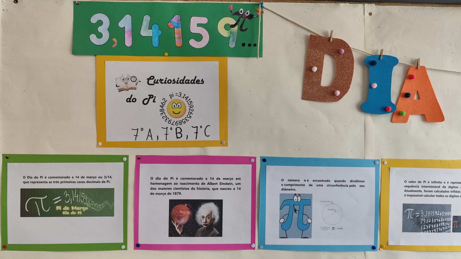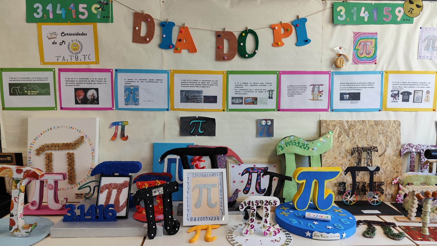 No âmbito da comemoração do Dia do Pi, celebrado a 14 de março, os alunos do 2.º e 3.º ciclos participaram numa atividade criativa dedicada à famosa constante matemática Pi (π).